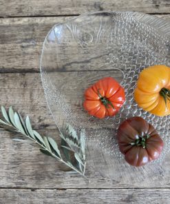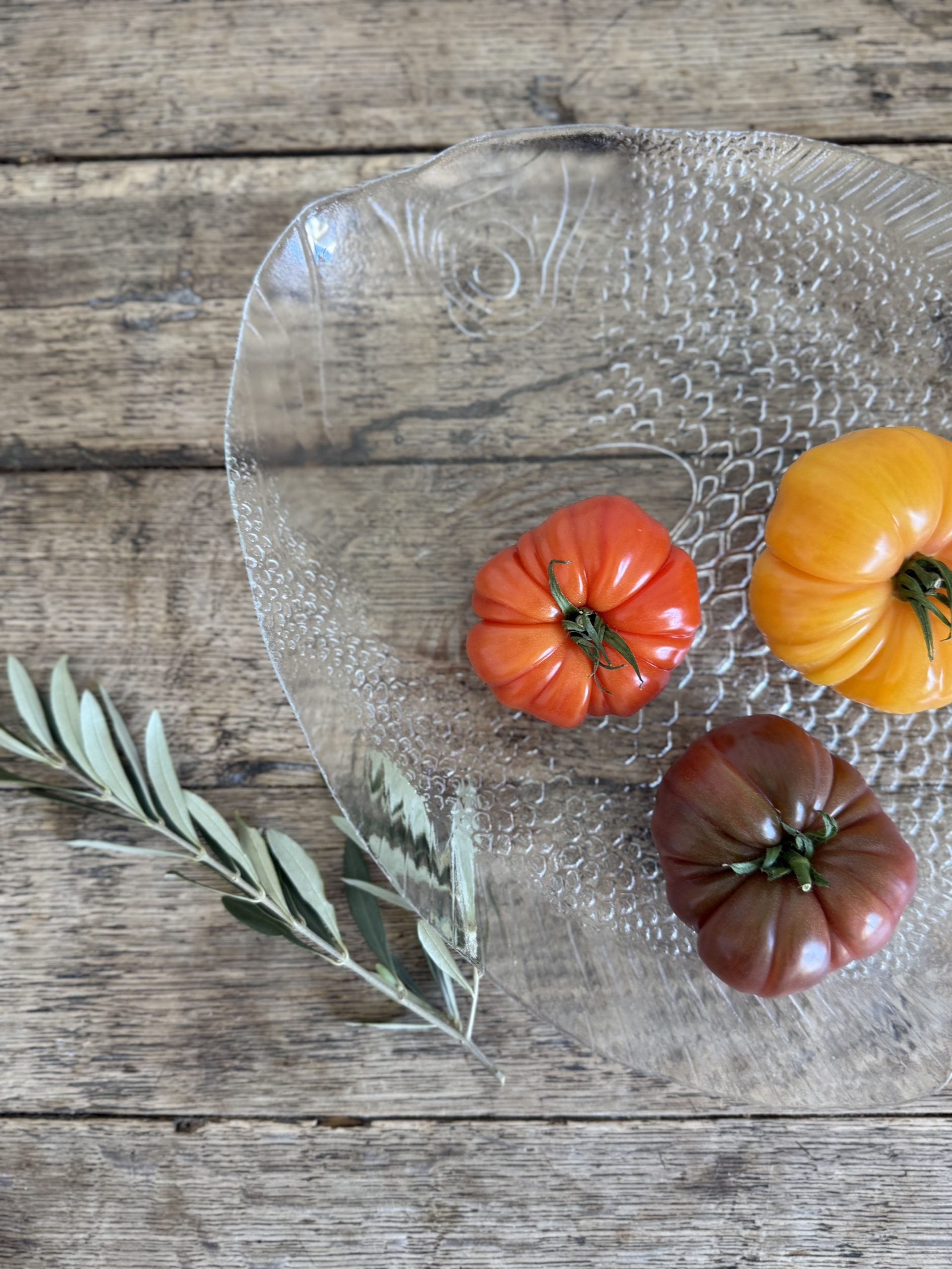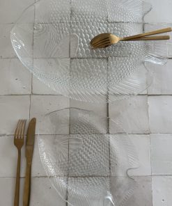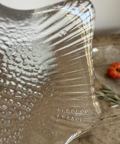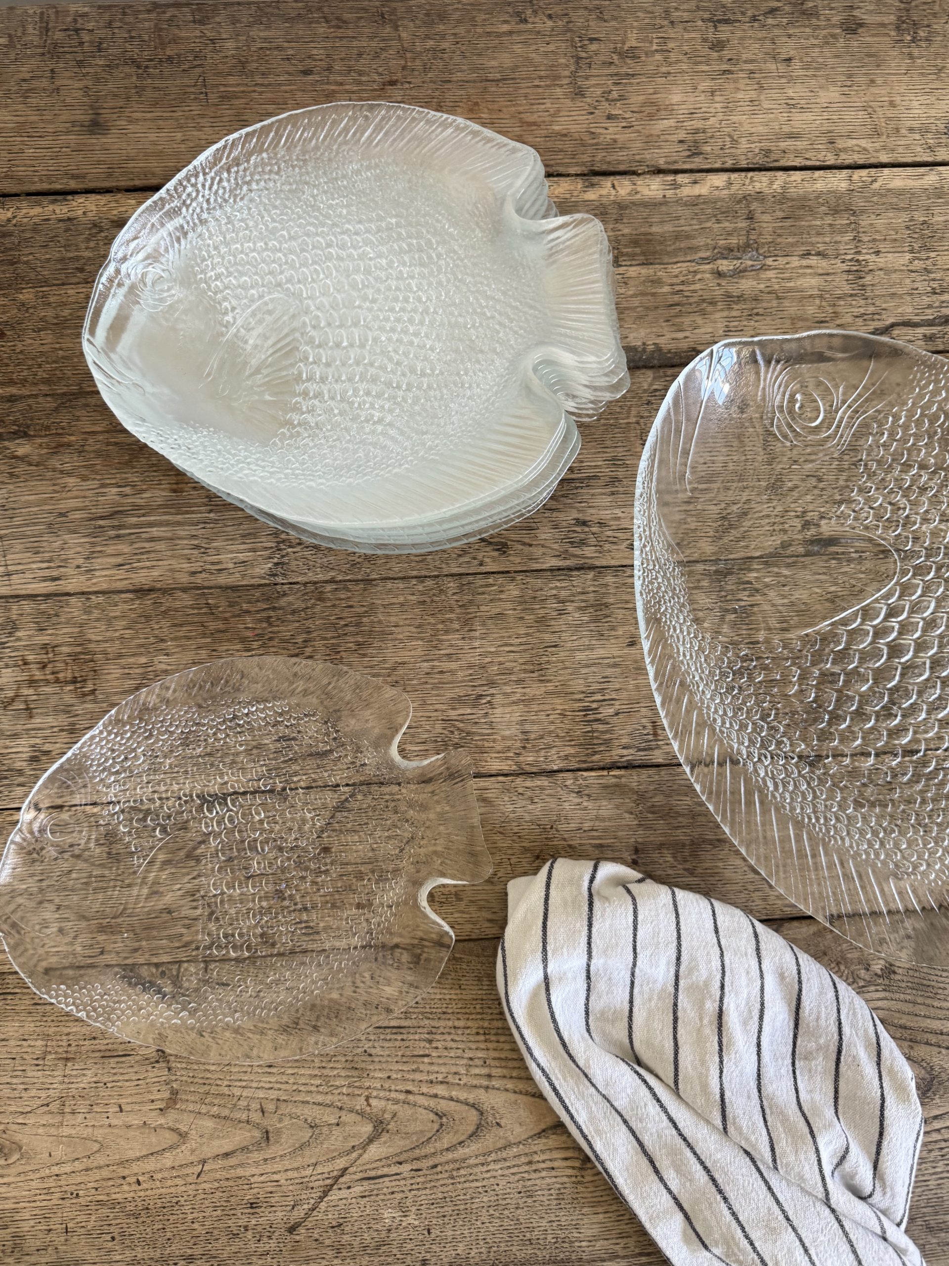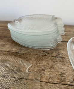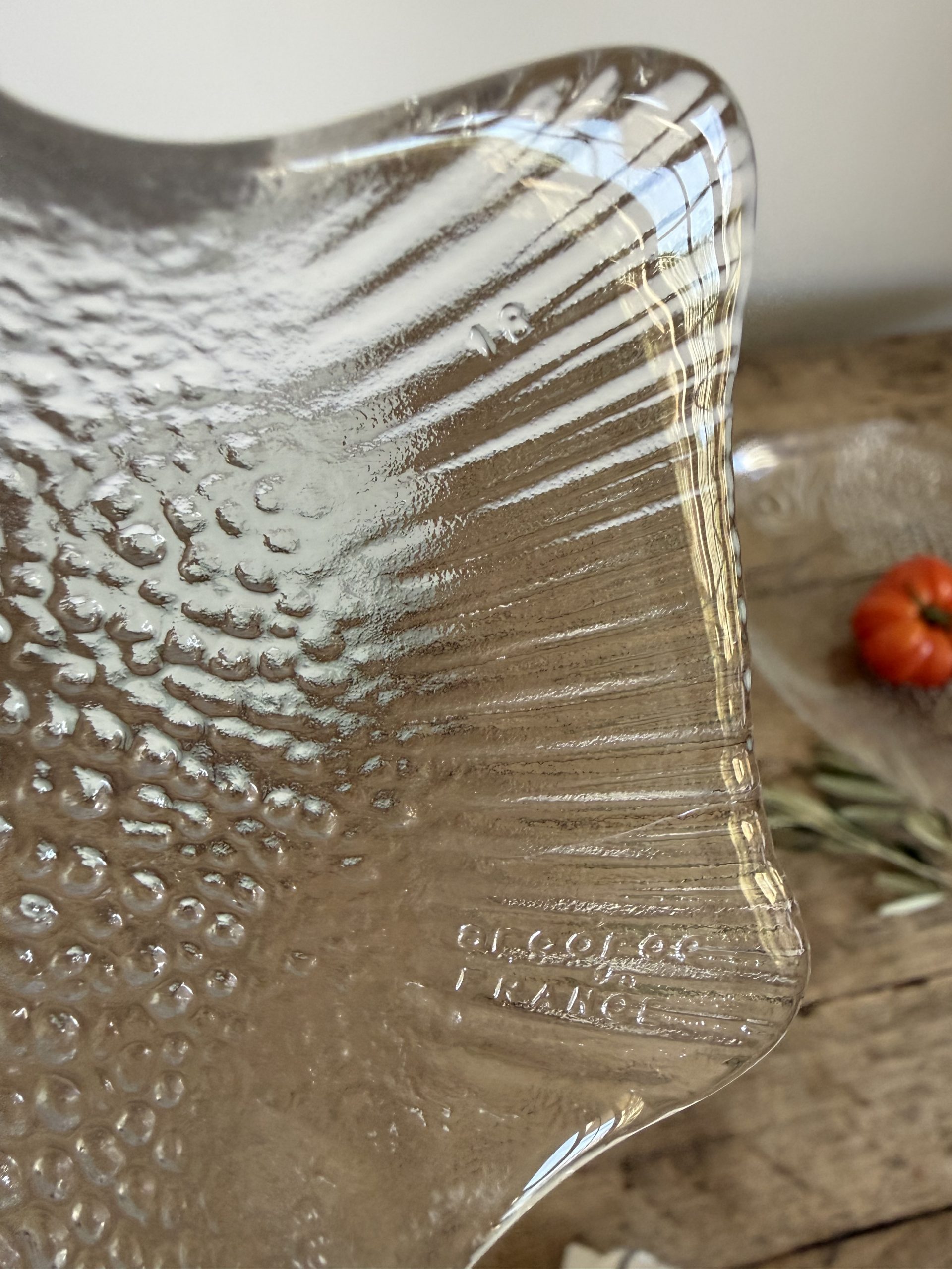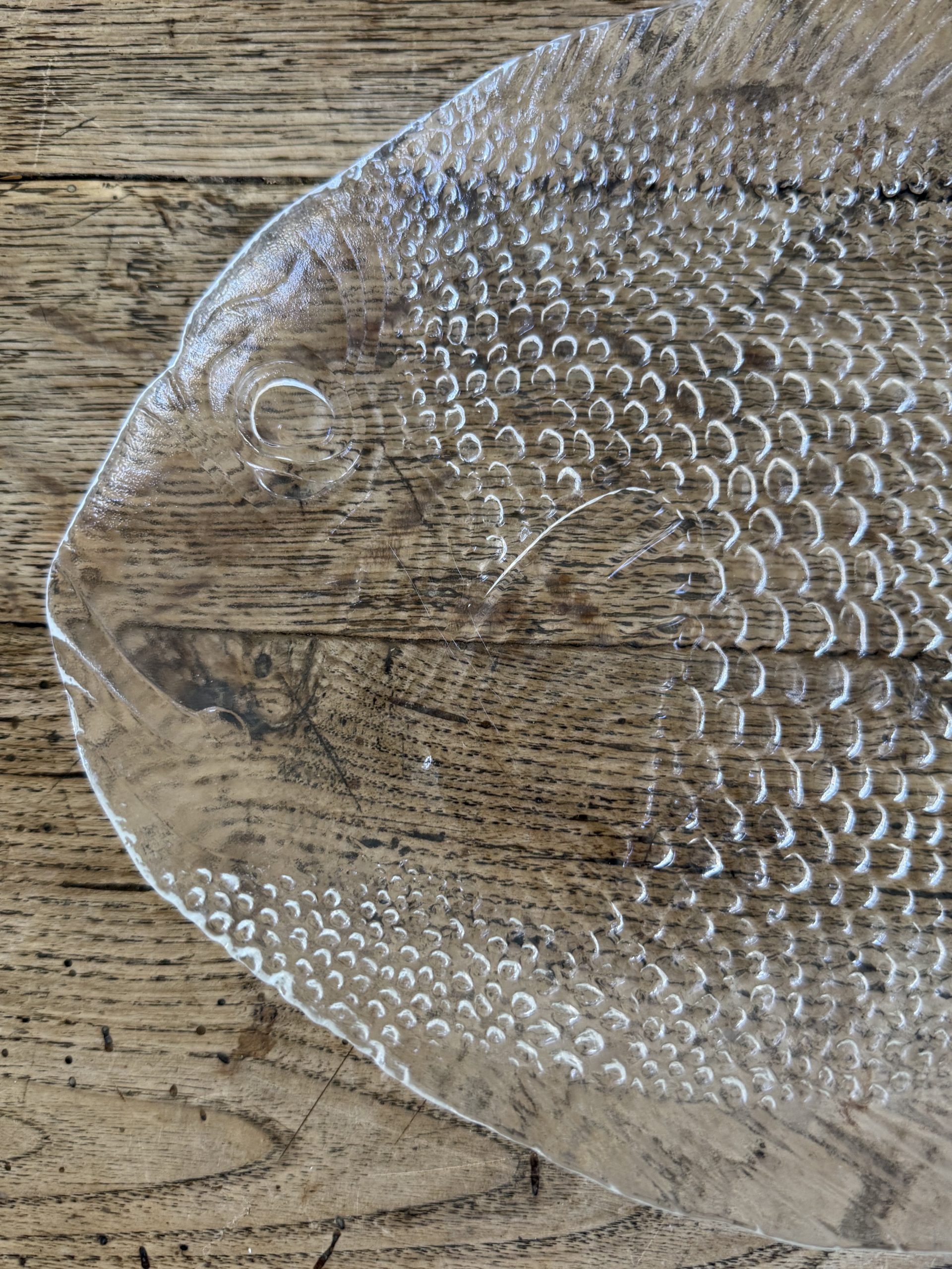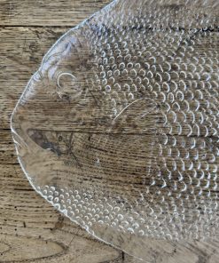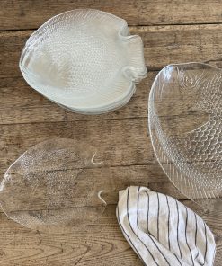 Bel ensemble emblématique de l’art de la table des années 1970, réalisé en verre moulé épais et transparent. Chaque pièce adopte la silhouette stylisée d’un poisson dont les écailles en relief et les nageoires finement dessinées créent un jeu de texture très graphique.