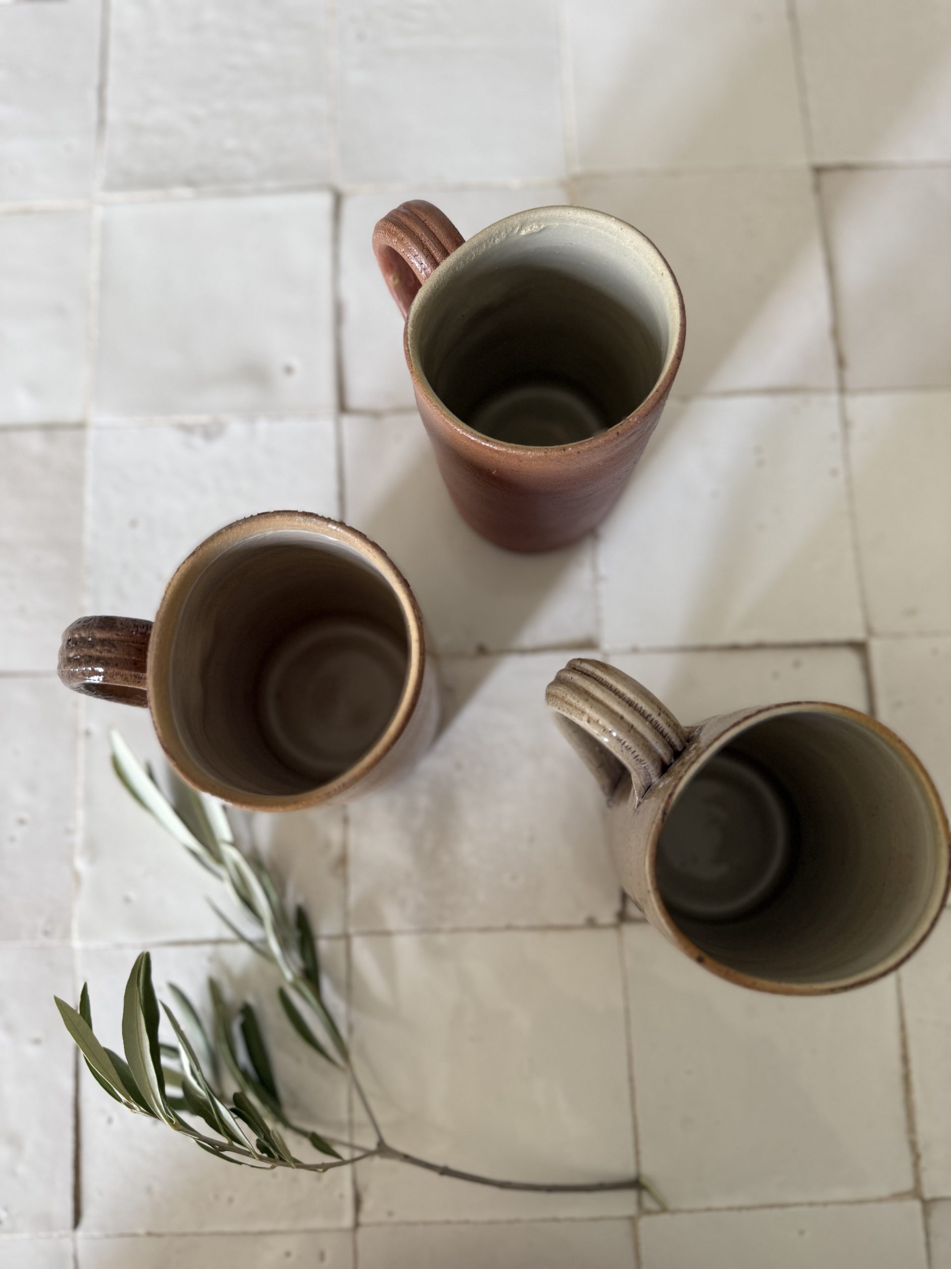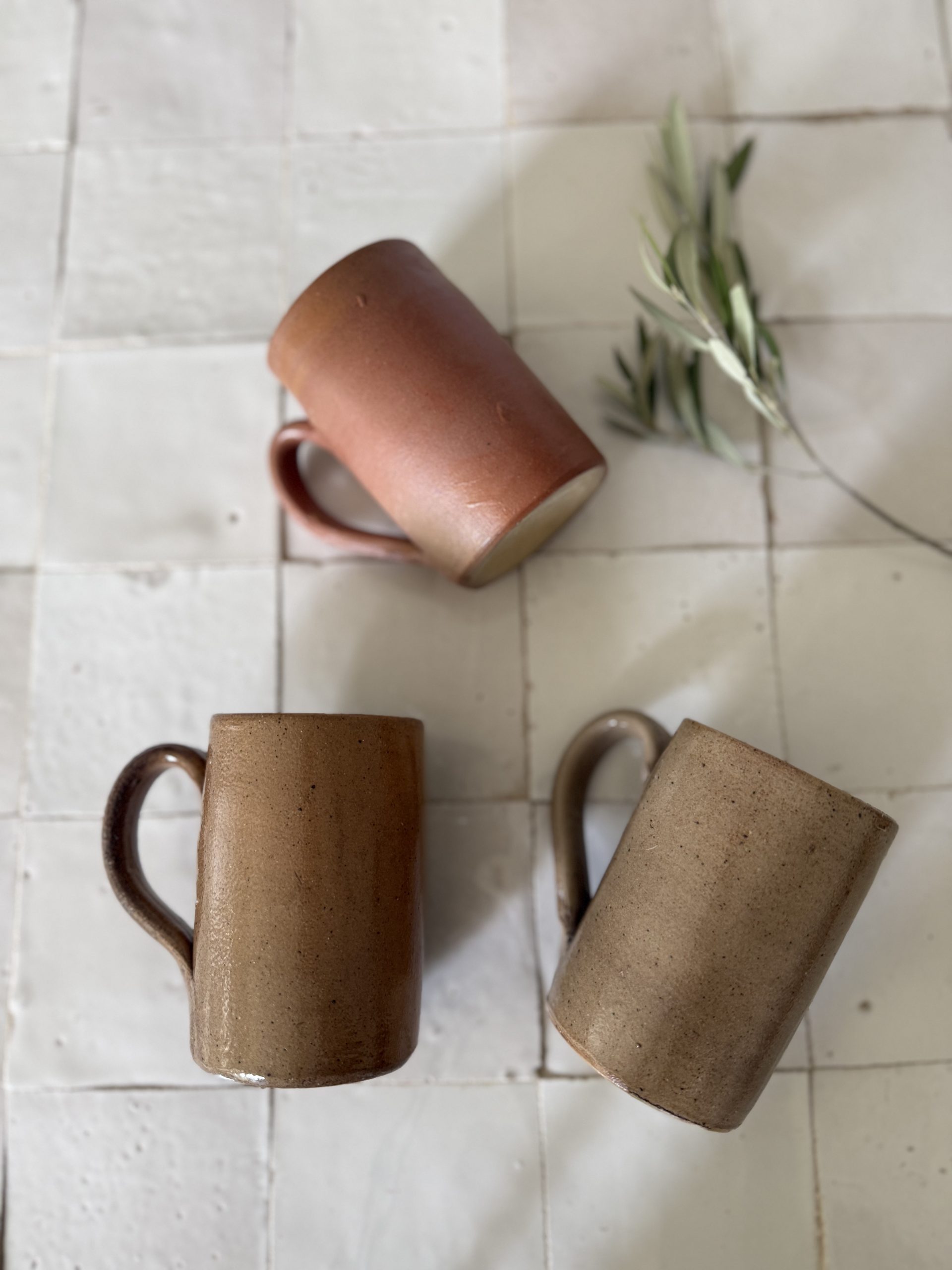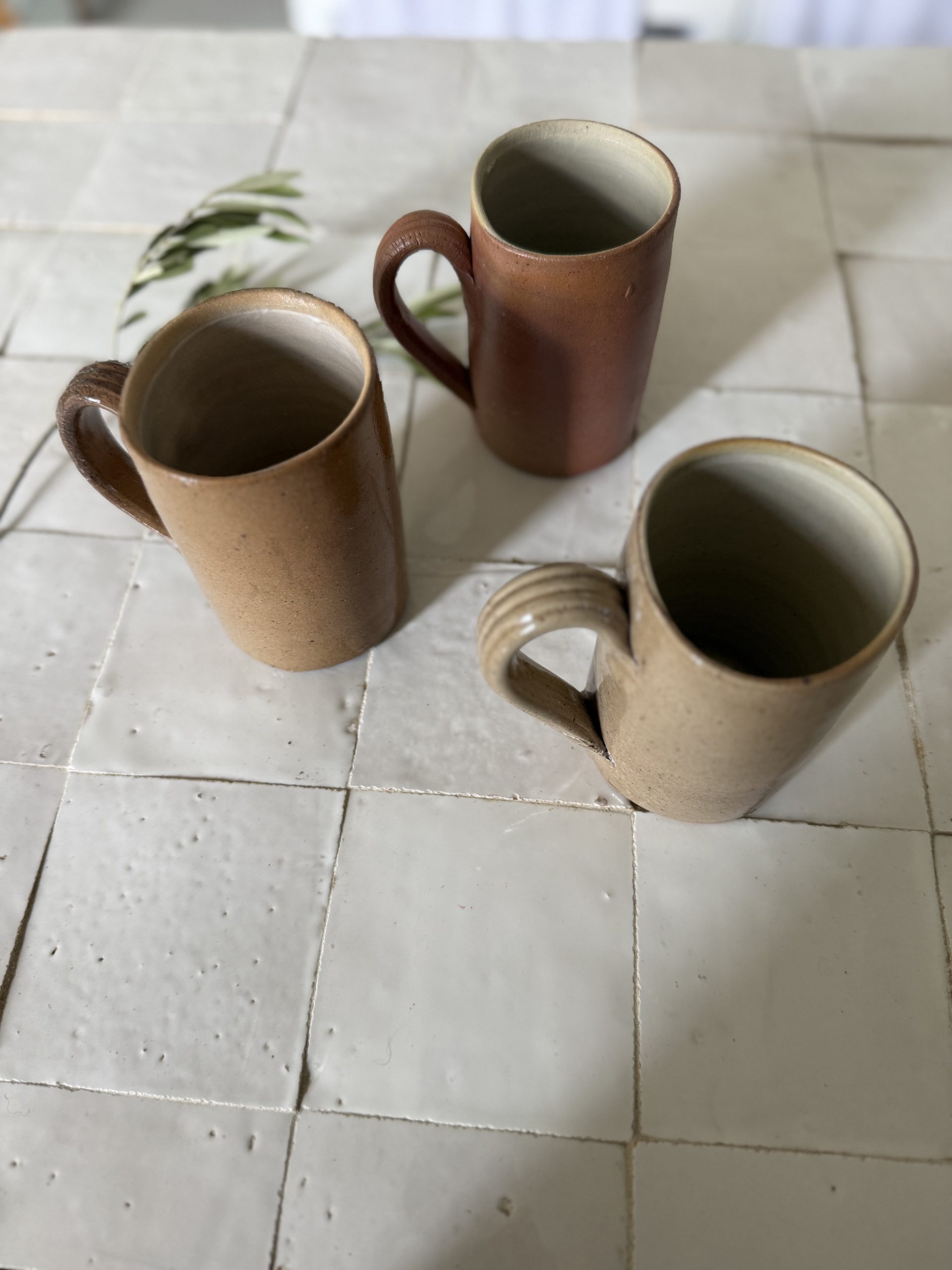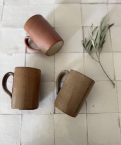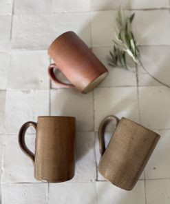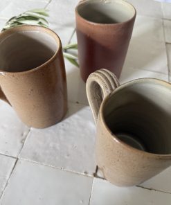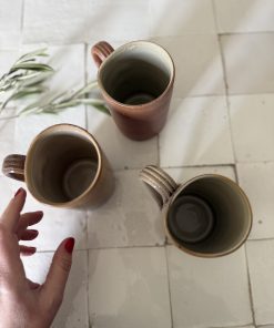 3 mugs en grès – céramique artisanale vintage tons terre