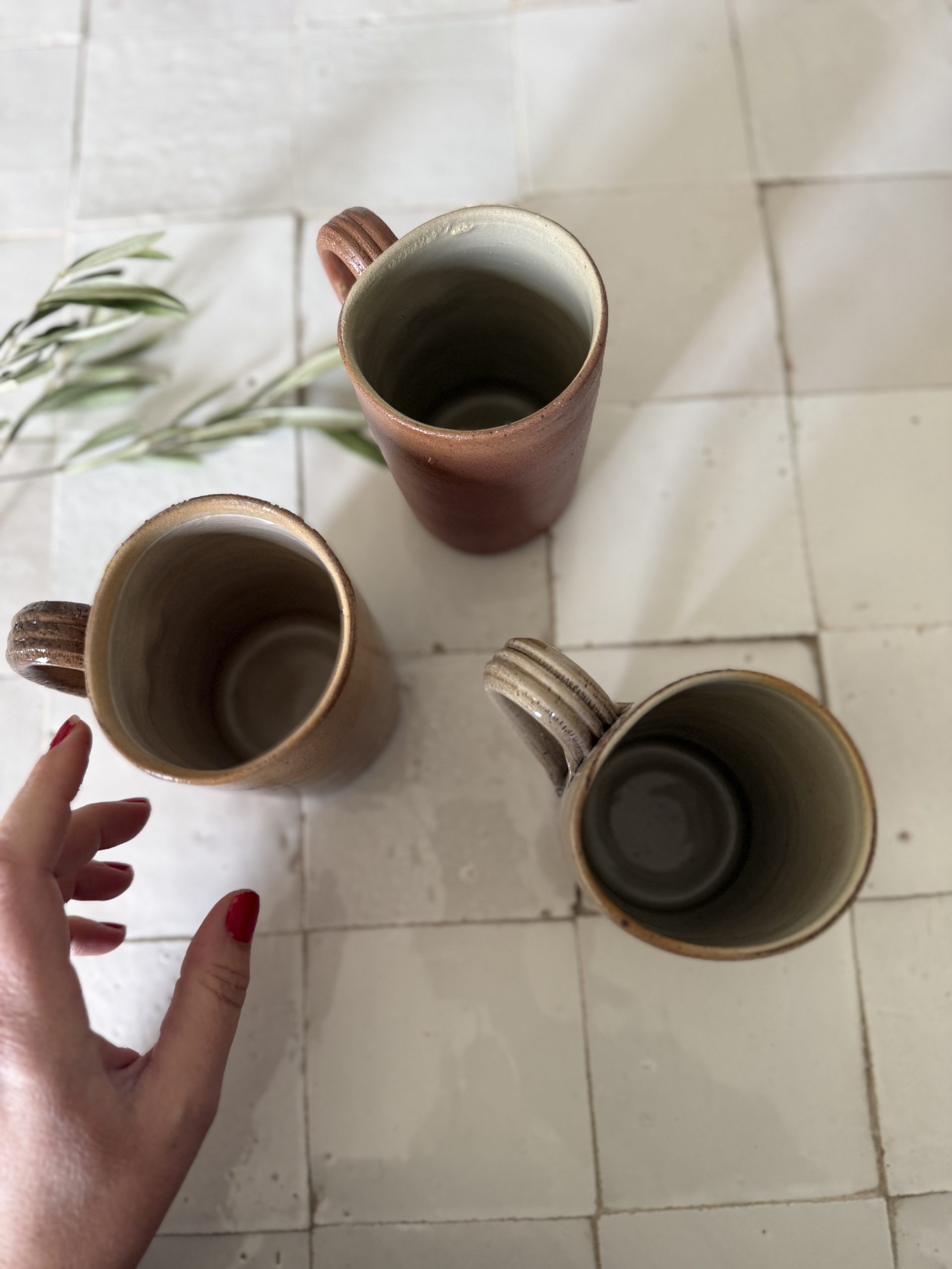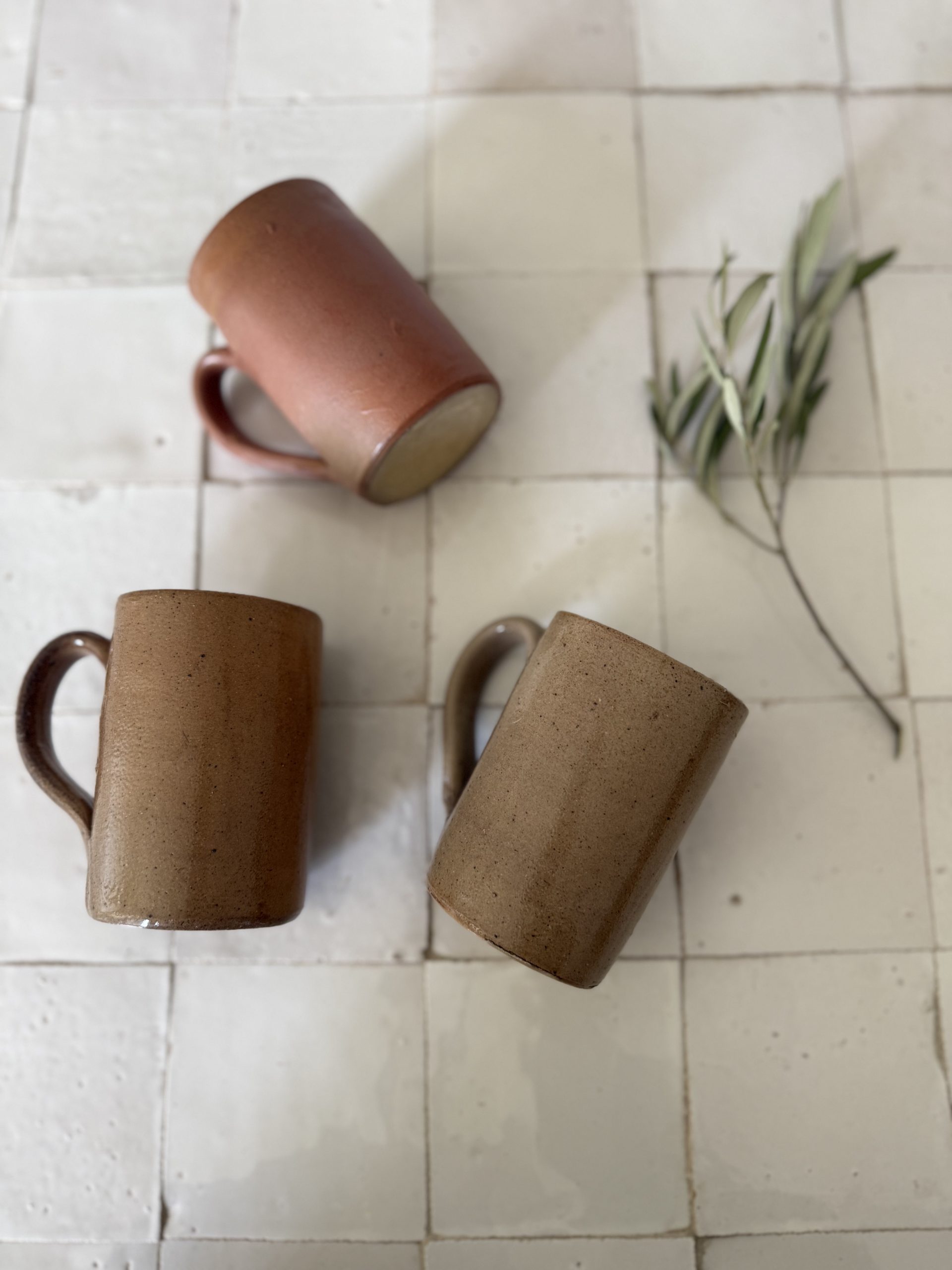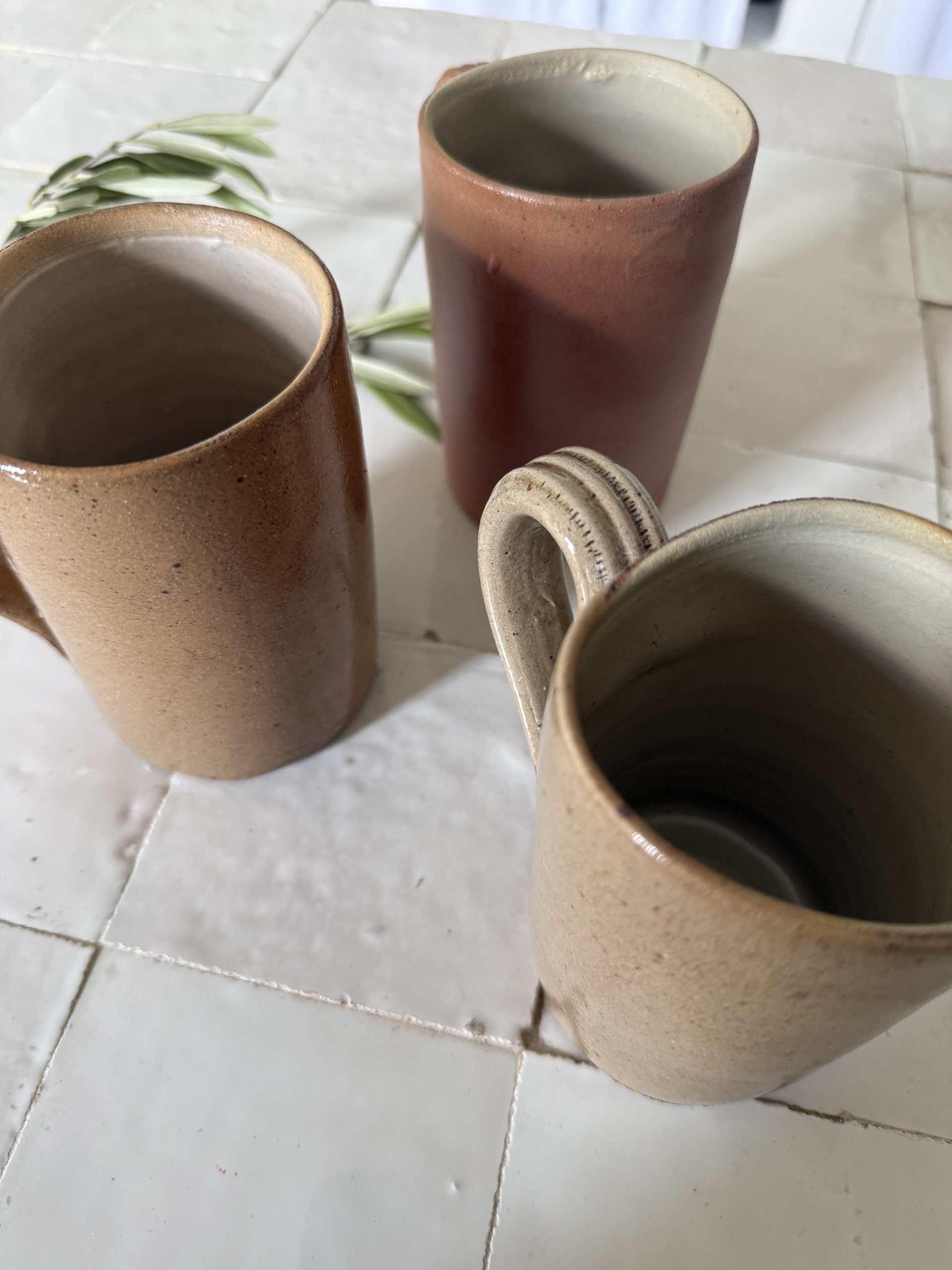 3 mugs en grès – céramique artisanale vintage tons terre