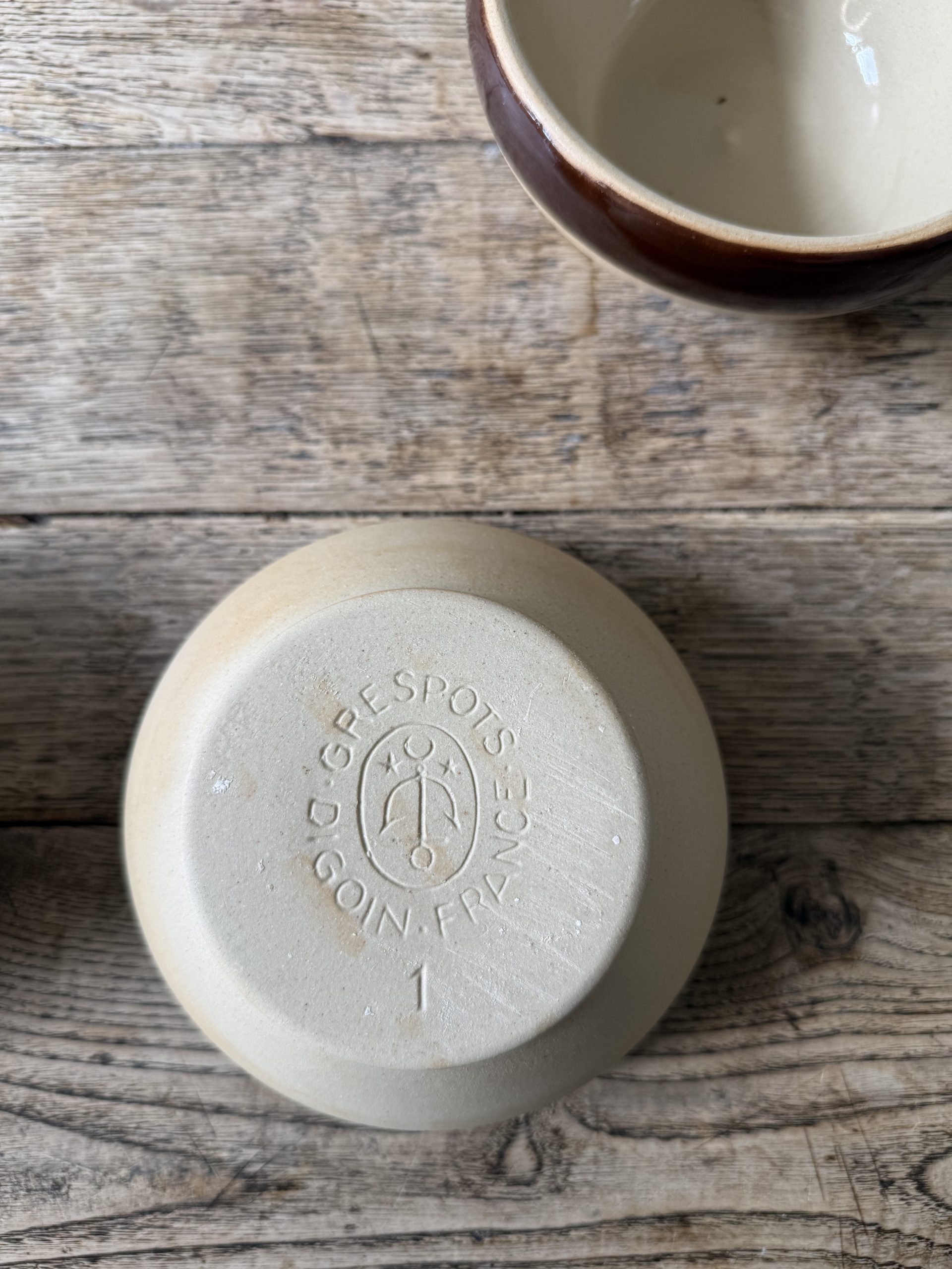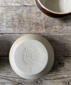 Bol en grès émaillé signé Digoin Sarreguemines, modèle bicolore brun et beige, typique des productions françaises des années 60-70.