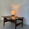 Le contraste entre la chaleur du bois et la rigueur graphique des poignées et du piètement lui donne une allure plus affirmée.