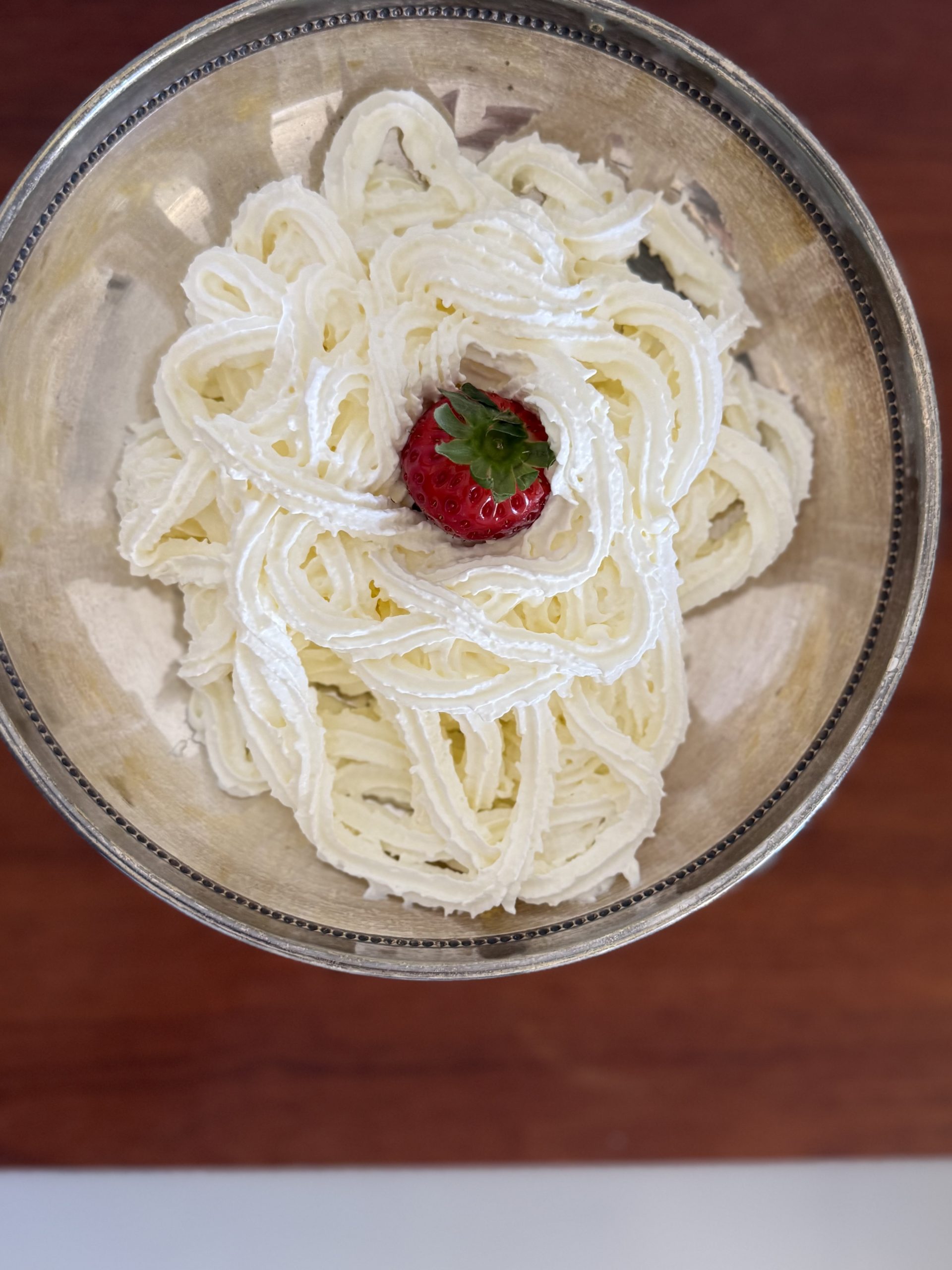 La bordure est soulignée d’un délicat décor perlé.