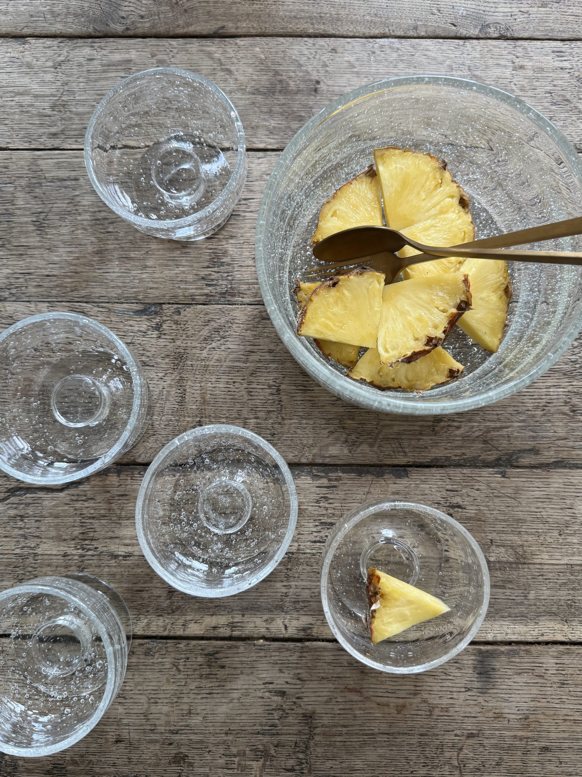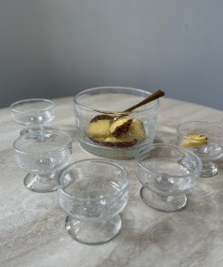 Les coupes sur piédouche sont parfaites pour servir glaces, salades de fruits ou desserts d’été, tandis que le saladier peut accueillir fruits frais ou dessert à partager.