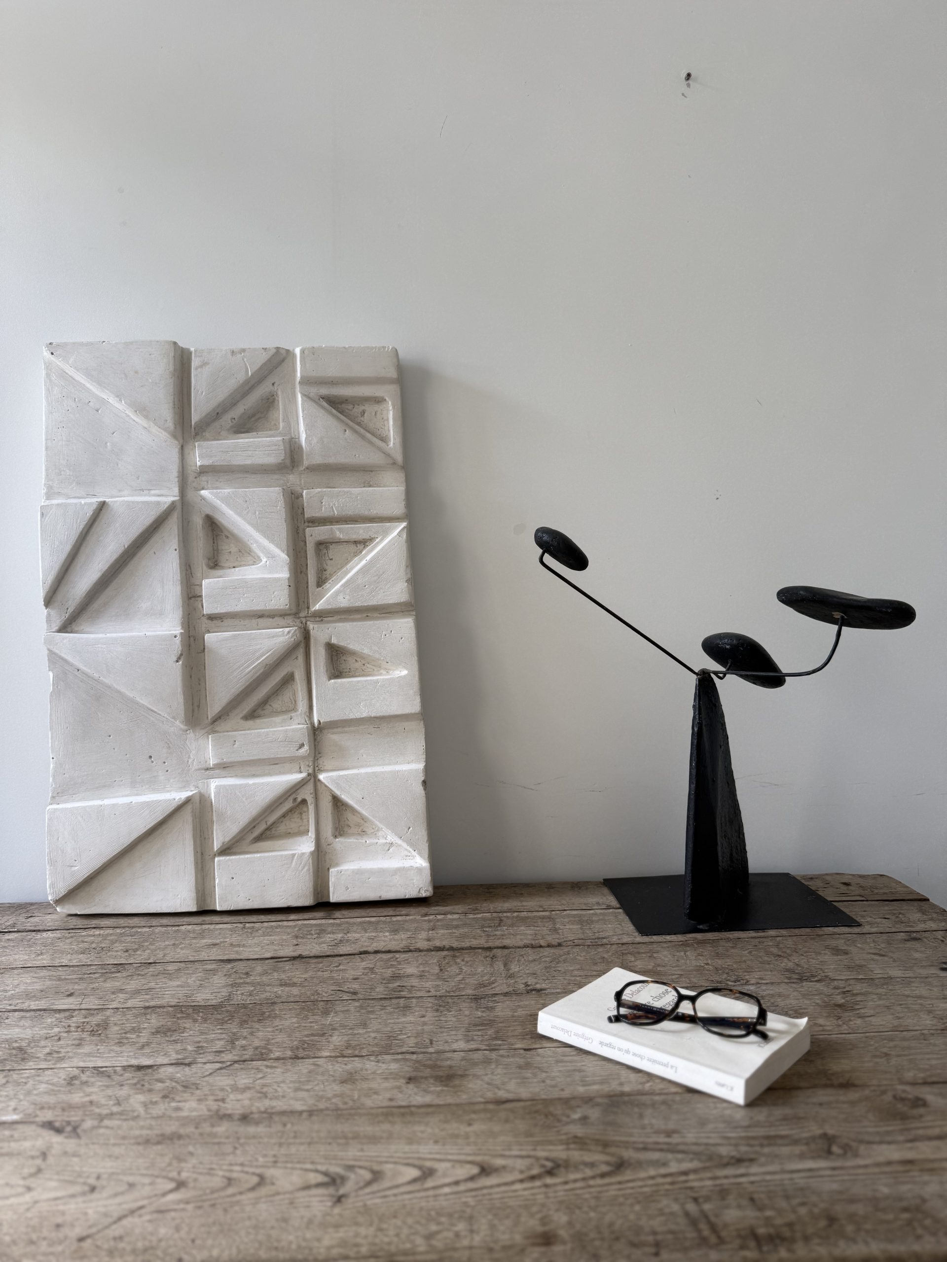Grand panneau mural en plâtre – relief géométrique moderniste