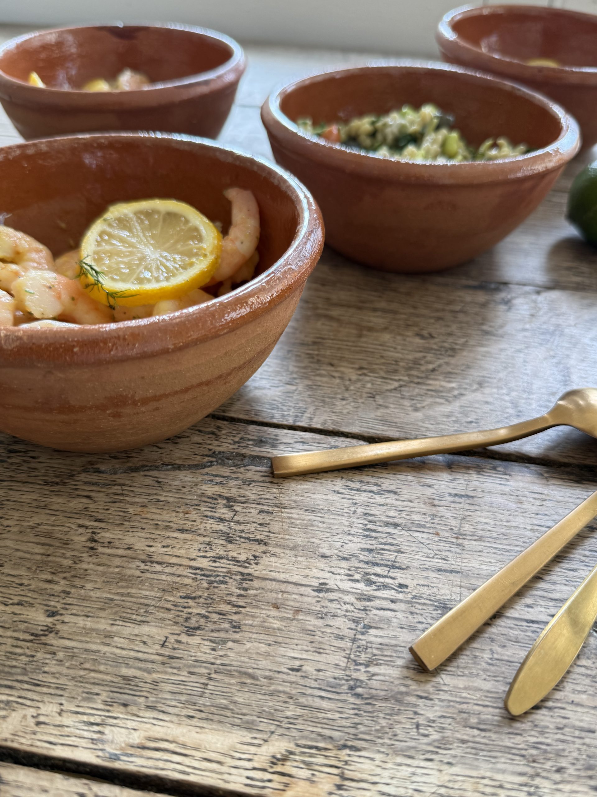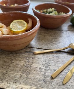 Leur forme simple et généreuse, avec bord arrondi et parois épaisses, en fait des pièces idéales pour servir tapas, olives, crevettes, salades.